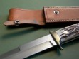 Summary: this is a Lile Fighting / Combat Knife made around 1978. The blade is 7" long with LILE stamp -- the upper clip is sharpened back approx. 2-3/4". The knife is fitted with a double brass hilt, brass pins and stag slabs – overall length is exactly 12”. As far as Lile fighters go, this is an absolutely primo example. It's one of the nicest you'll find, near mint condition with nothing but VERY light fondling marks on the brass hardware.