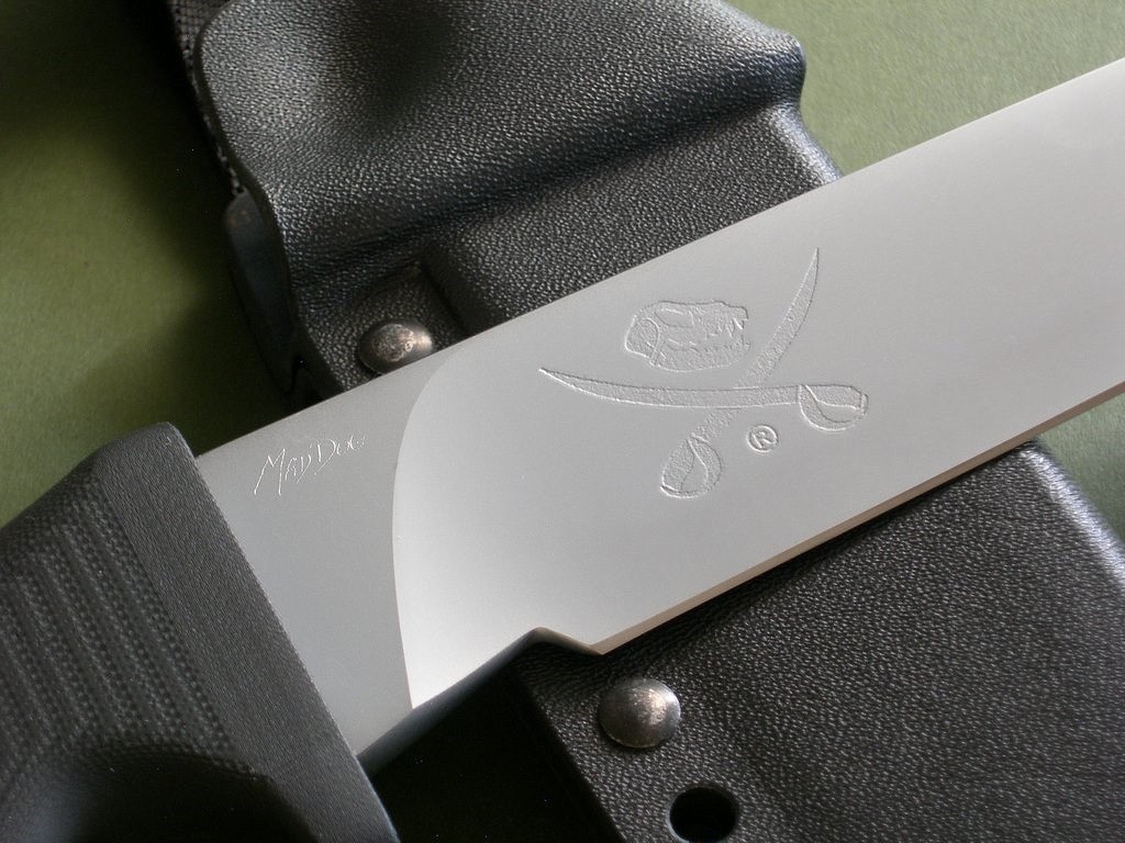 8 photos for review β as shown, a new embroidered Mad Dog carry case is included. This model is outrageously nice with the tanto blade, VVTL finish and custom etch, it's a very rare model and you could wait a long, long time to find another like it. It looks wickedly nice and feels even better in hand, a perfect Mad Dog knife for collection / investment purposes. Great price... the first to buy gets his or her choice of custom etch. Thanks and good luck.