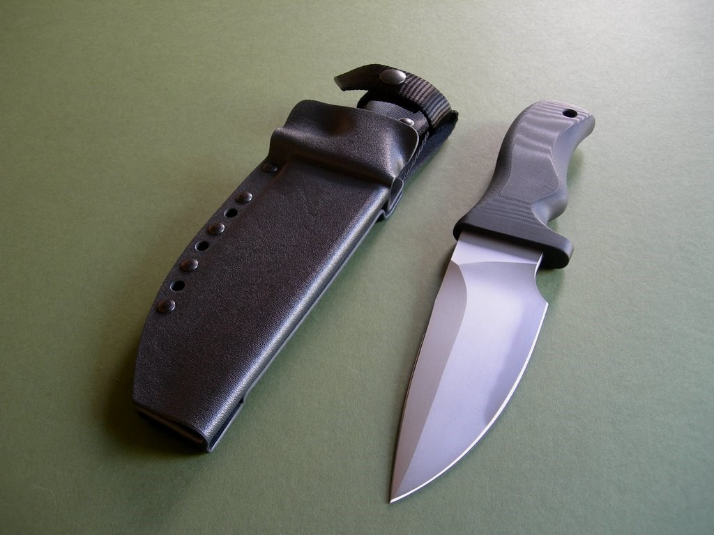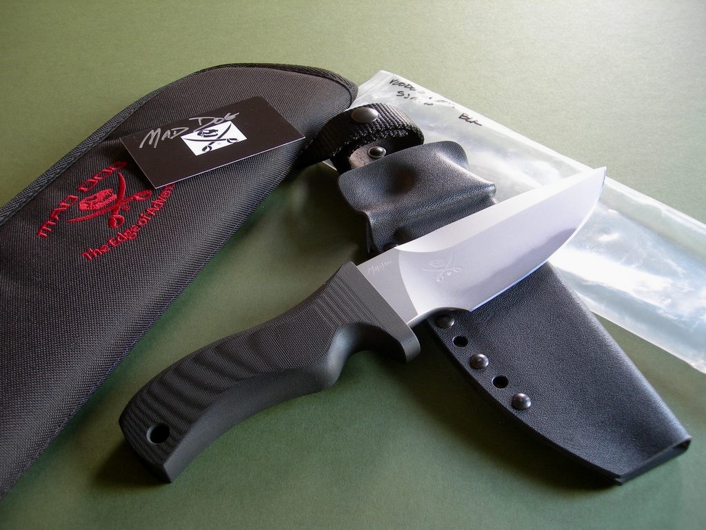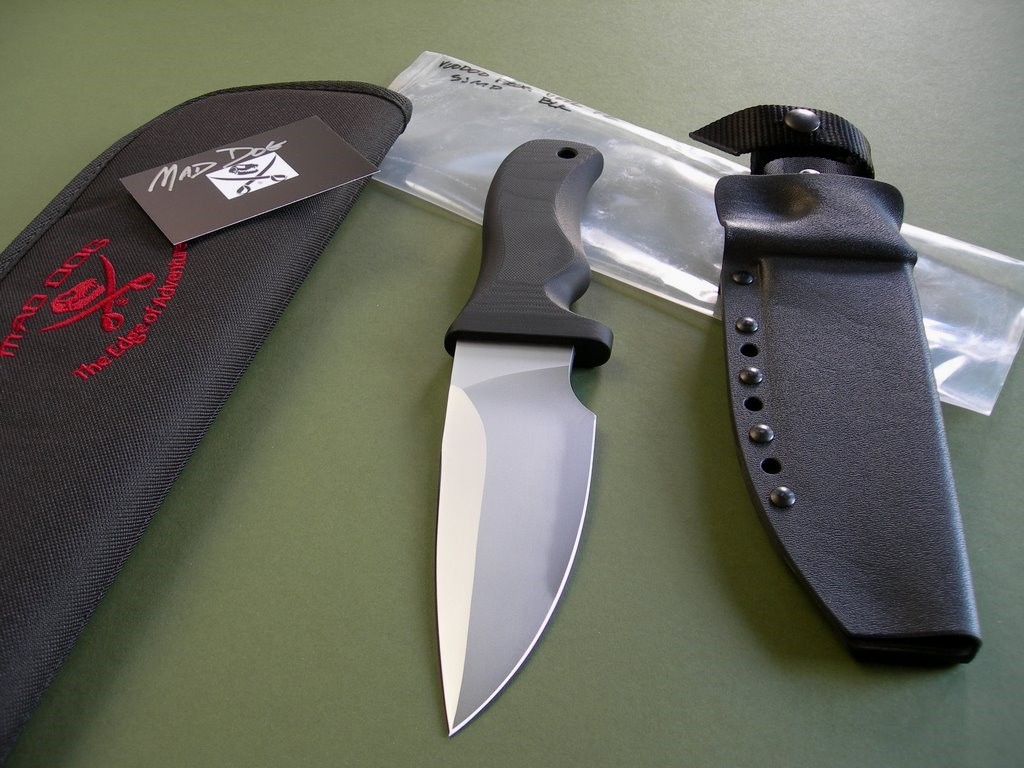 5 photos for review – as shown, a new Mad Dog Knives carry case is included. This is an tremendously popular model, I rarely keep them in stock long and I haven’t had a black handled VF in months and months and months. It's a great knife for personal use / collection purposes: it's double-edged, razor sharp and very sturdy. Get yourself a handful of wickedness… thanks and good luck.