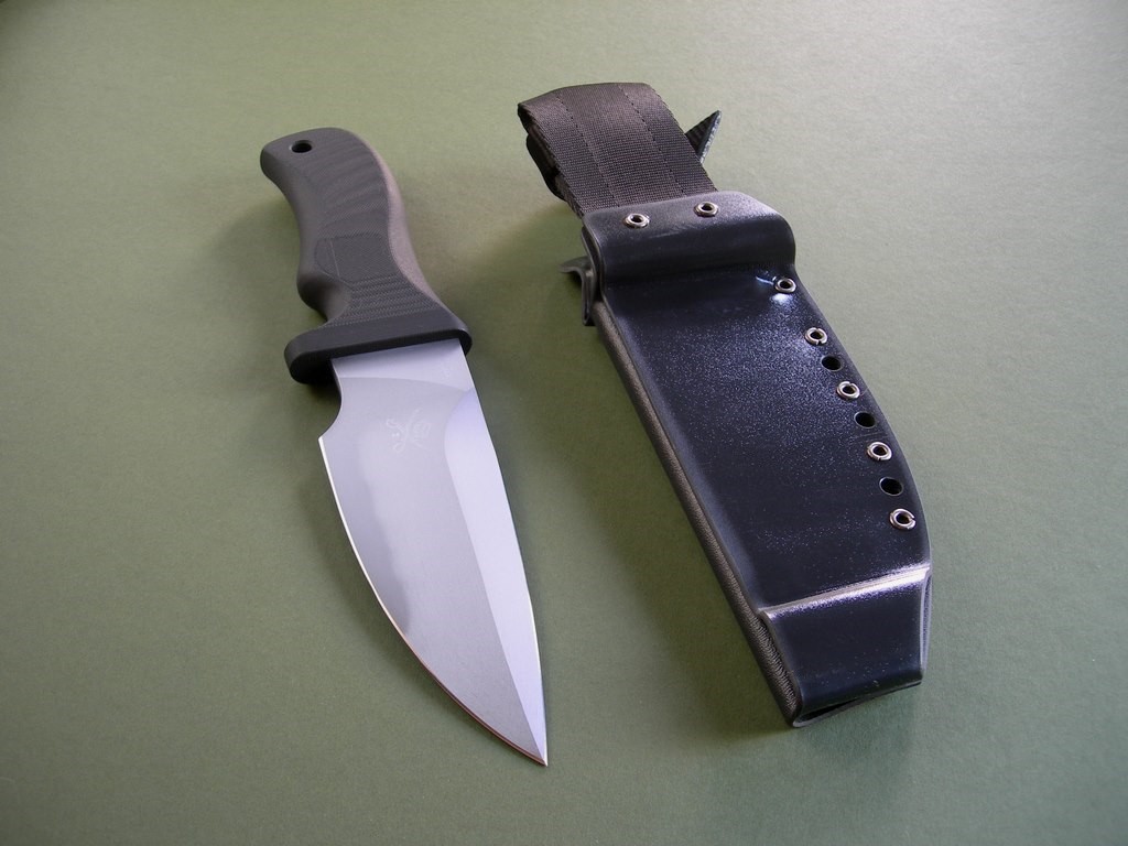 This model usually comes with a standard kydex belt sheath, it's been upgraded to an ATAK sheath. The sheath has never been on a belt, mint condition