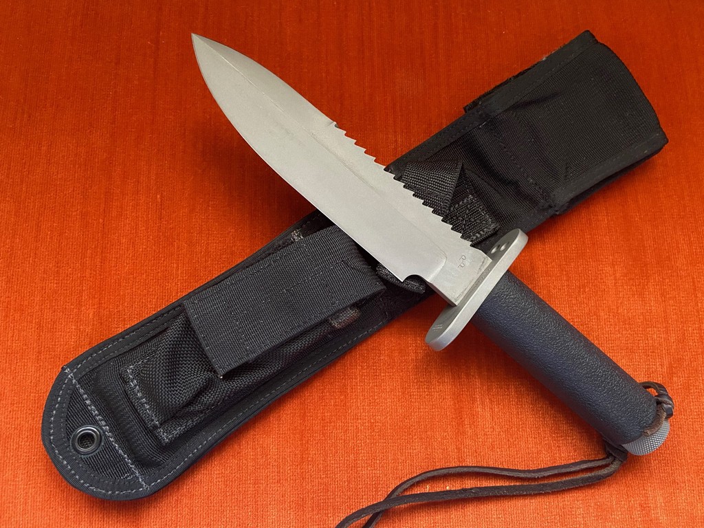 The black cordura sheath is original to the knife and looks great. There is a small pouch on the front of the sheath that'll fit a stone, multi-tool or survival gear.