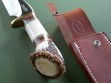 Summary: a very collectible Randall 50th Anniversary Knife, this one #047 and one of the 37 to 40 of the 300 made that have the rare S stamp. This knife has a 7-1/4" stainless steel blade, brass hilt, polished stag handle insert, and pinned crown stag butt. The knife is in near mint condition with just a bit of patina on the guard, blade and handle look new.